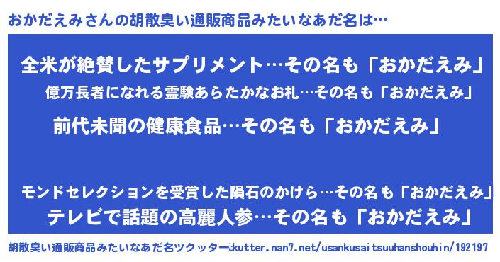 | 欧米人風あだ名 | 『ダルビッシュおかだえみ』 |