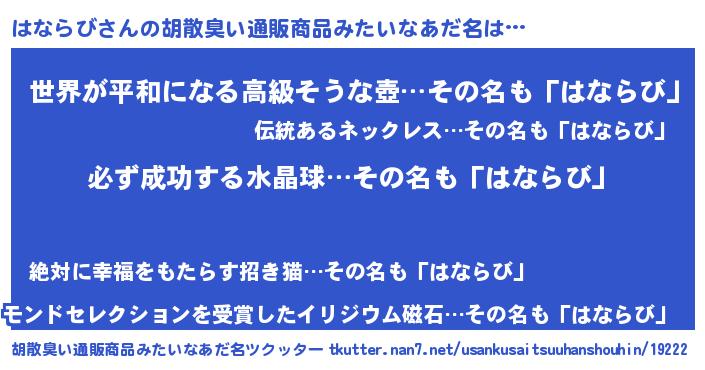 | ヘコむあだ名 | 『はなもー』『豆乳』『はなっちょ』 |