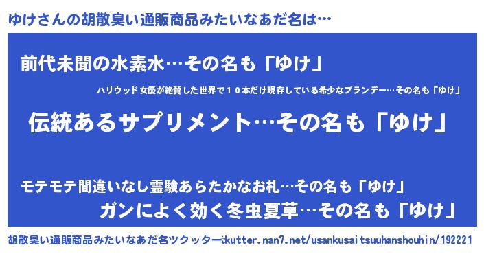 | 恥ずかしいあだ名 | 『ユケリンリン』『ゆけちん』 |