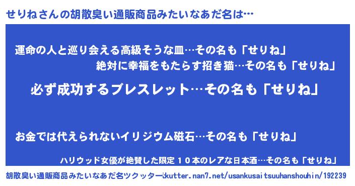 | ヘコむあだ名 | 『せりふぇ~』『牛乳』『せりね(笑)』 |