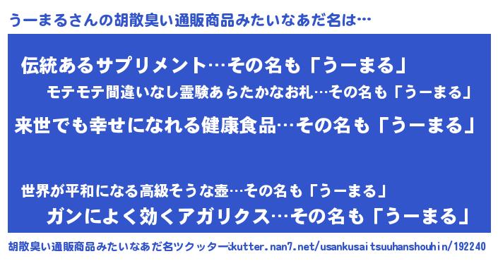 | ヘコむあだ名 | 『うーまる(苦笑)』『うーを』 |