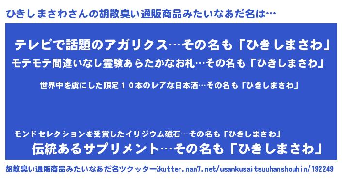 | 意味不明あだ名 | 『住所不定無職ひきしまさわ(39歳)』 |