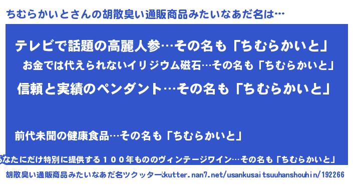 | 意味不明あだ名 | 『とにかく怪しいちむらかいと』 |