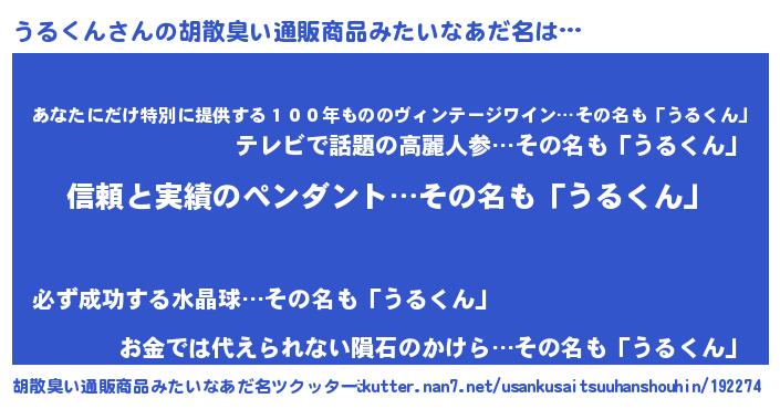 | ピコ太郎風あだ名 | 『ウル五郎』『ウウ太郎』『ウコ八郎』 |