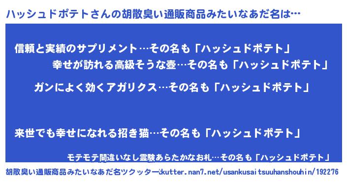 | ポケモン風あだ名 | 『ハッセウス』『ヒハッシュドポテト』 |