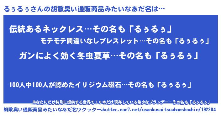 | ヘコむあだ名 | 『るぅっちょ』『るぅにゅー』 |