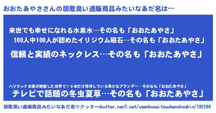 | 肩書あだ名 | 『おおたあやさ少将』『おおたあやさ機長』 |