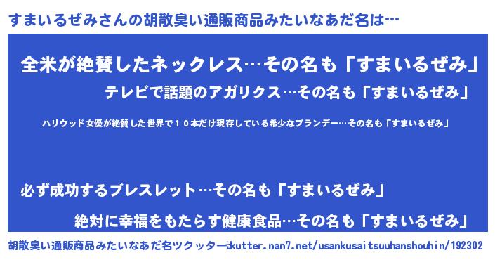 | ヘコむあだ名 | 『すまっちょ』『すまいるぜみ(爆)』 |