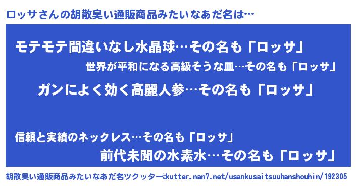 | ヘコむあだ名 | 『ロッにー』『ロッサ(笑)』 |