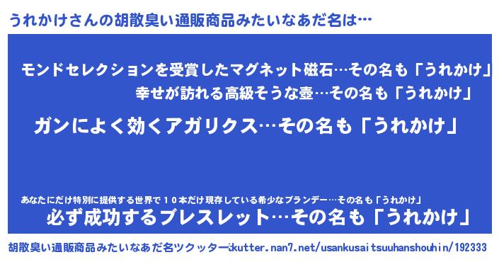 | ヒーロー風カッコイイあだ名 | 『ウルトラ戦士ウレカケ』『仮面ウレダー』 |