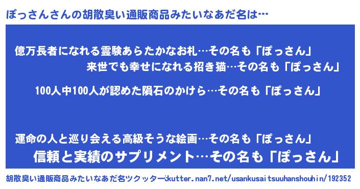 | ヒーロー風カッコイイあだ名 | 『正義の使者ぽっさん』『炎刃騎士ポッ』 |