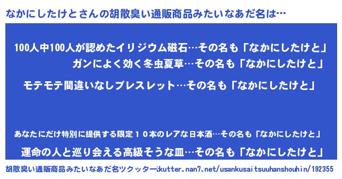 | 恥ずかしいあだ名 | 『プリティーなかにしたけと』『なかちん』 |