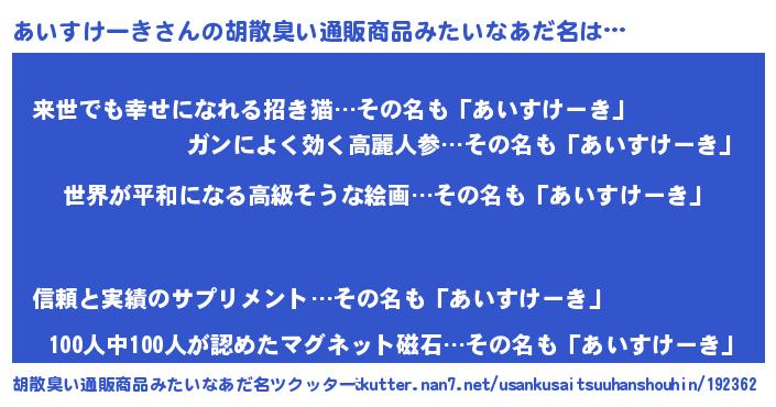 | 欧米人風あだ名 | 『あいすけーきクリステル』 |