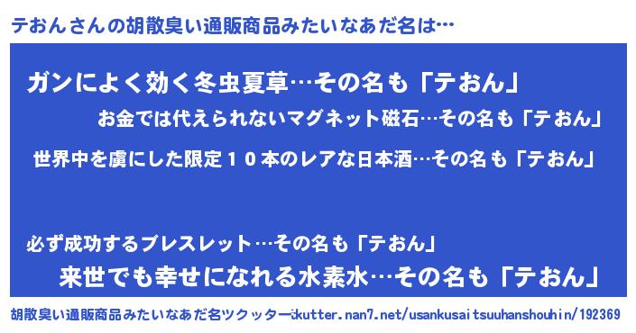 | 意味不明あだ名 | 『住所不定無職テおん(43歳)』『自称テおん』 |