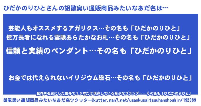 | ポケモン風あだ名 | 『ヒヒダカノリヒト』『ヒダセウス』 |