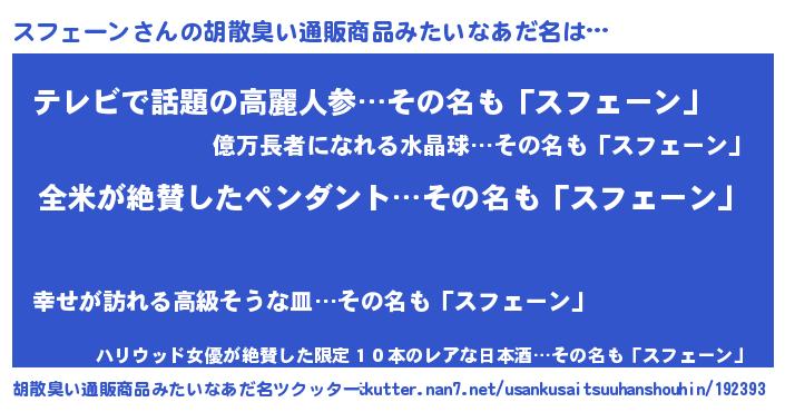 | 恥ずかしいあだ名 | 『スフリンリン』『スフェーンデラックス』 |