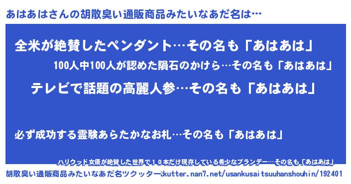 | ピコ太郎風あだ名 | 『アハ次郎』『アア太郎』『アコ六郎』 |