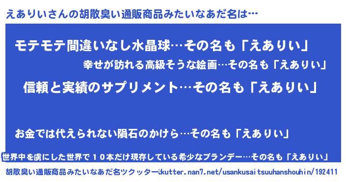 | 意味不明あだ名 | 『とにかく怪しいえありい』 |