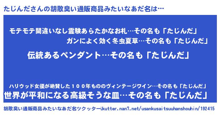 | 意味不明あだ名 | 『とにかく怪しいたじんだ』 |