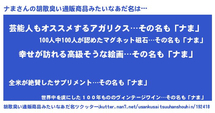 | 意味不明あだ名 | 『ナまフォーエバー』『自称ナま』 |