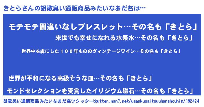 きとらさんの胡散臭い通販商品みたいなあだ名をツクッター!
