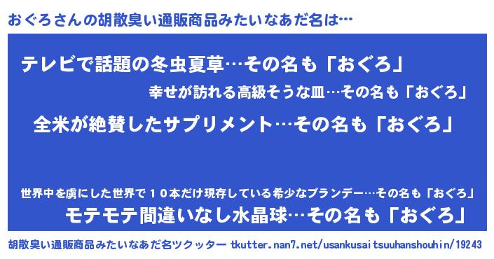 | ヘコむあだ名 | 『おぐ太郎』『おぐっふぃ~』 |