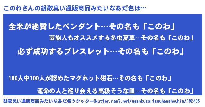 | 男性向けラノベタイトル風あだ名 | 『このわの憂鬱』『魔法科高校のこのわ』 |