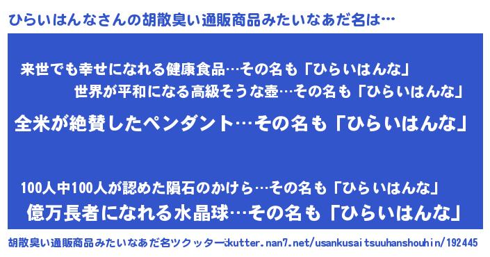 | ヘコむあだ名 | 『ひらっちょ』『ひらいはんな(笑)』 |