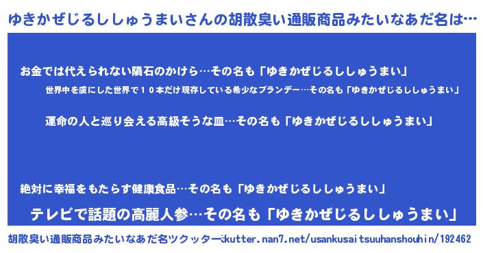 | 意味不明あだ名 | 『ゆきかぜじるししゅうまいフォーエバー』 |