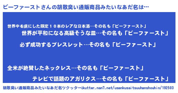 | 男性向けラノベタイトル風あだ名 | 『ビーファーストの憂鬱』 |