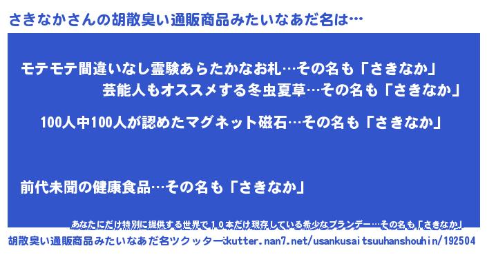| ヘコむあだ名 | 『さきふぇ~』『さきなか(震え声)』 |
