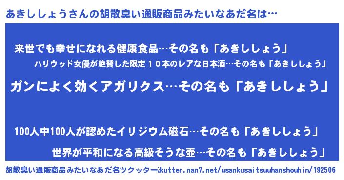 | 意味不明あだ名 | 『自称あきししょう』 |