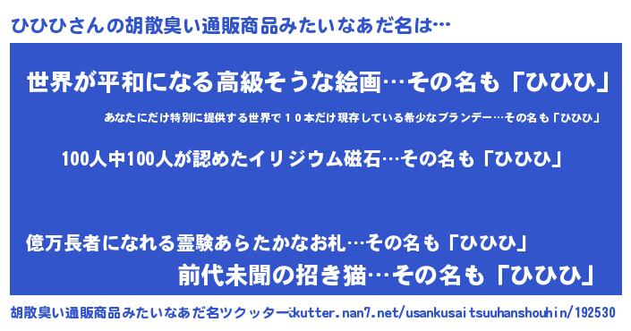 | ヘコむあだ名 | 『牛乳』『ひひひ(笑)』『ひひにー』 |