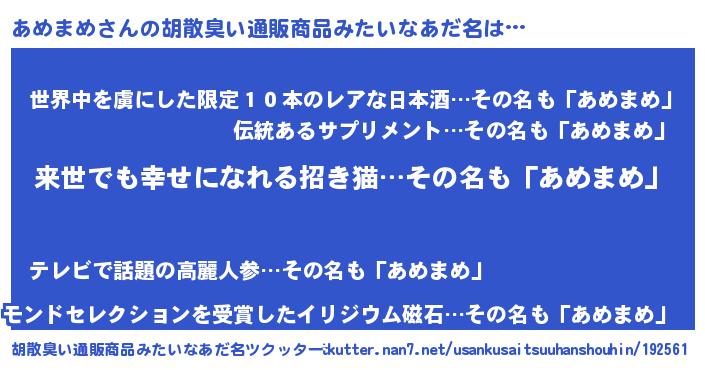 | 意味不明あだ名 | 『永久保存あめまめ』 |