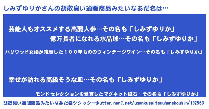 | 料理風あだ名 | 『しみずゆりかのカルパッチョ風』 |