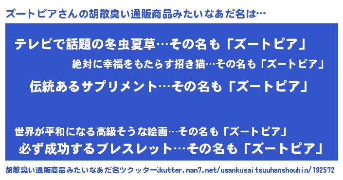 | ヒーロー風カッコイイあだ名 | 『魔戒騎士ズー』『スーパーズートピア』 |