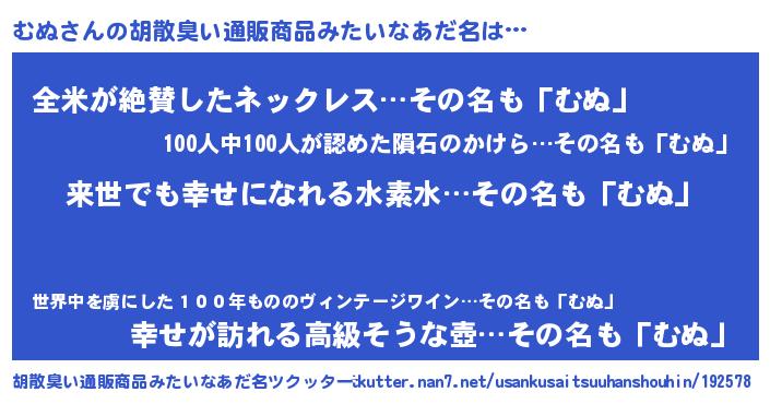| ヘコむあだ名 | 『むぬ(震え声)』『むぬ太郎』 |