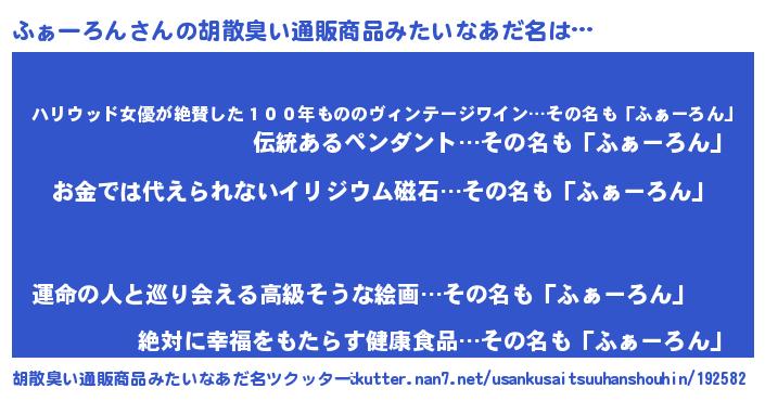 | 女子向けラノベタイトル風あだ名 | 『ふぁーろん恋絵巻』 |