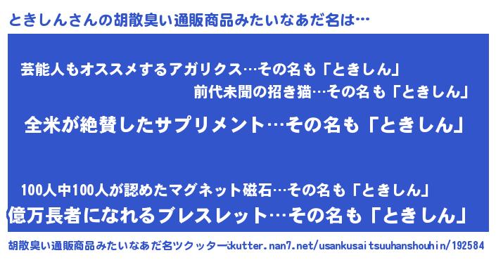 | 恥ずかしいあだ名 | 『トキリンリン』『トキシンデラックス』 |