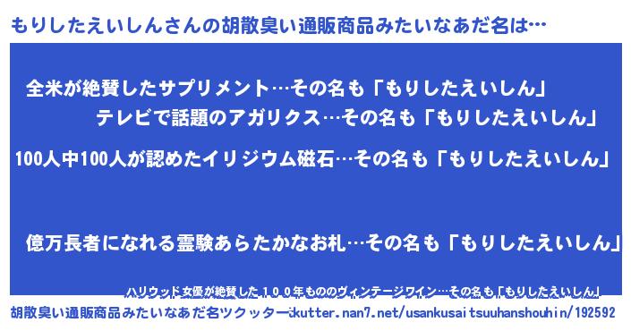 | 意味不明あだ名 | 『しいたけ科もりしたえいしん属』 |