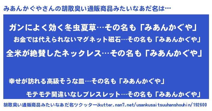 | 意味不明あだ名 | 『とにかく怪しいみあんかぐや』 |