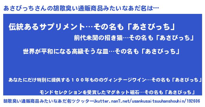 | 意味不明あだ名 | 『あさびっちフォーエバー』 |