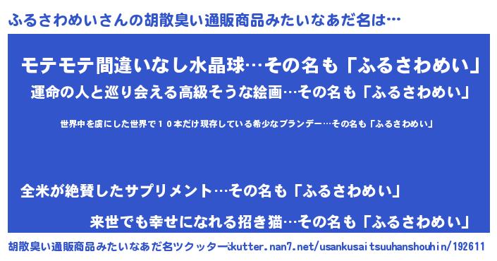 | 意味不明あだ名 | 『住所不定無職ふるさわめい(91歳)』 |