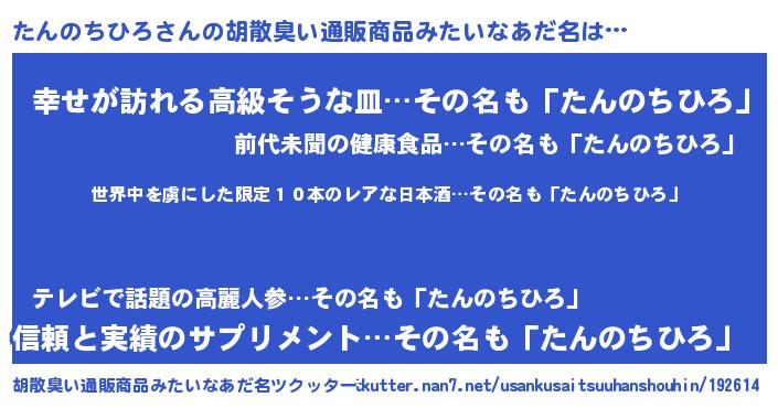 | 意味不明あだ名 | 『住所不定無職たんのちひろ(68歳)』 |