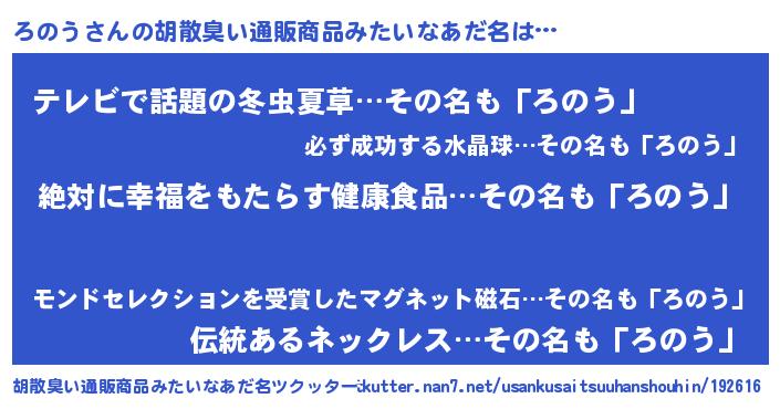 | 欧米人風あだ名 | 『ダルビッシュろのう』『ウサインろのう』 |