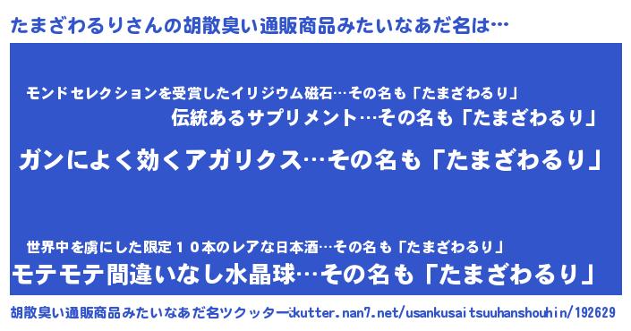 | 意味不明あだ名 | 『自称たまざわるり』 |