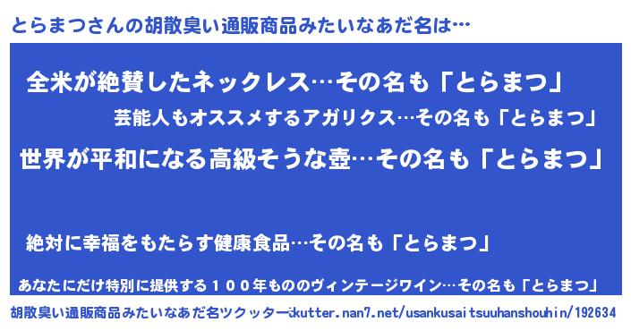 | 意味不明あだ名 | 『とらまつフォーエバー』『自称とらまつ』 |
