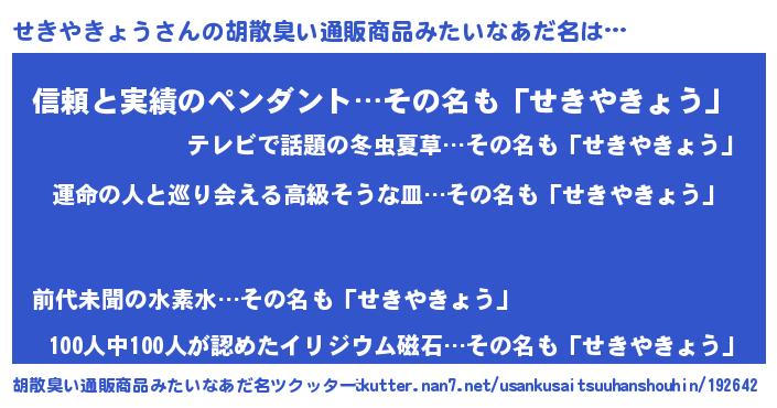 | 意味不明あだ名 | 『せきやきょうフォーエバー』 |