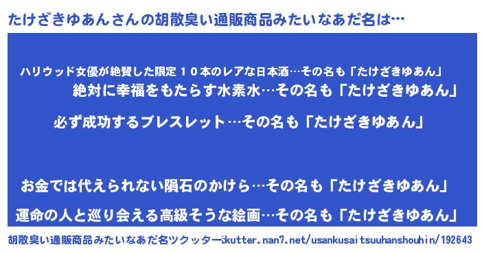 | 恥ずかしいあだ名 | 『プリティーたけざきゆあん』『たけちん』 |
