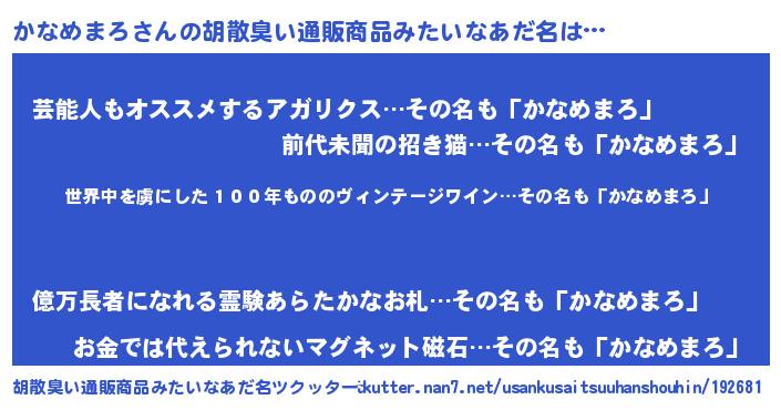 | 意味不明あだ名 | 『住所不定無職かなめまろ(13歳)』 |